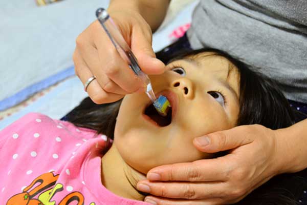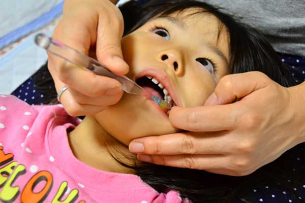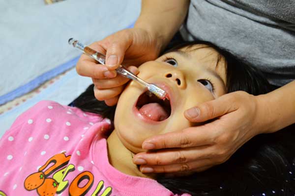 フッ素は、むし歯菌を寄せ付けにくくするもので、歯ブラシを使って塗布します。